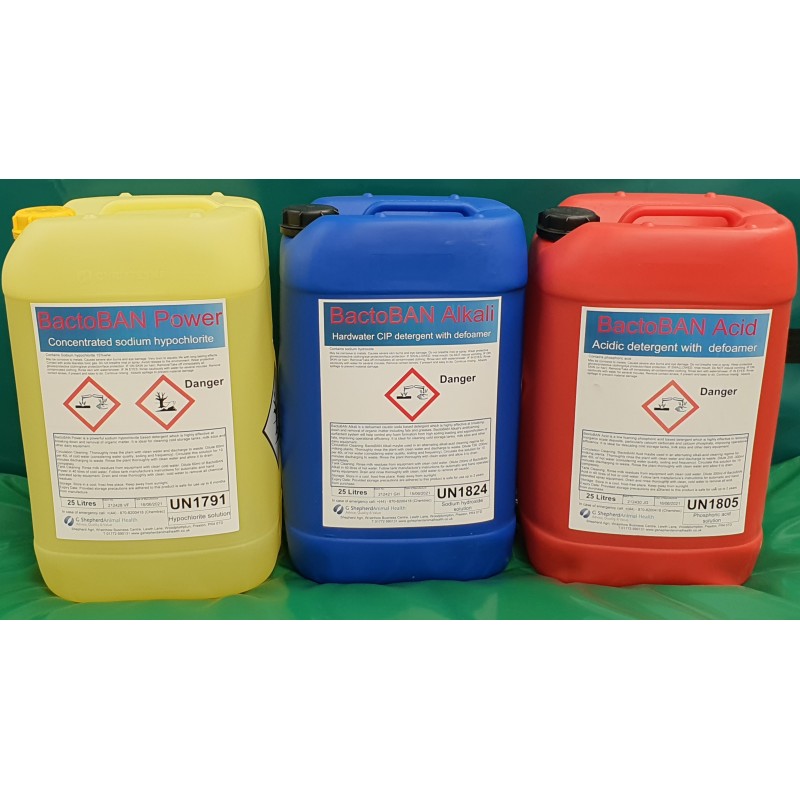 - BactoBAN ALKALI, highly concentrated chlorine free caustic detergent cleaner, to shift fat