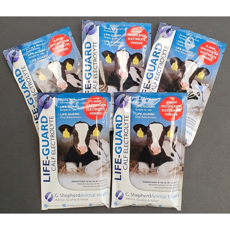 A high specification electrolyte powder for mixing with water. The resulting dietetic feed is to be used for stabilisation of water, acid-base and electrolyte balances in scouring calves. Also containing charcoal and kaolin to bind bugs, toxins and some fluid.